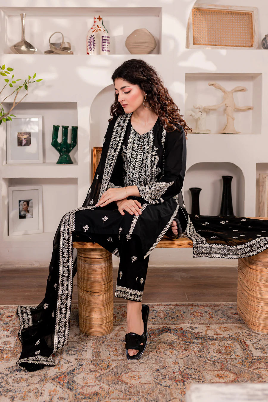 Gracefully designed paneled shirt cut from the finest quality Cotton in the shades of black. Embellishments feature monochrome inspired intricate embroidery details all over the shirt